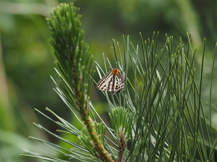 松の葉に止まる♀。 松林に生息している蝶というのは珍しいが、これもアリとの共生によるもの。