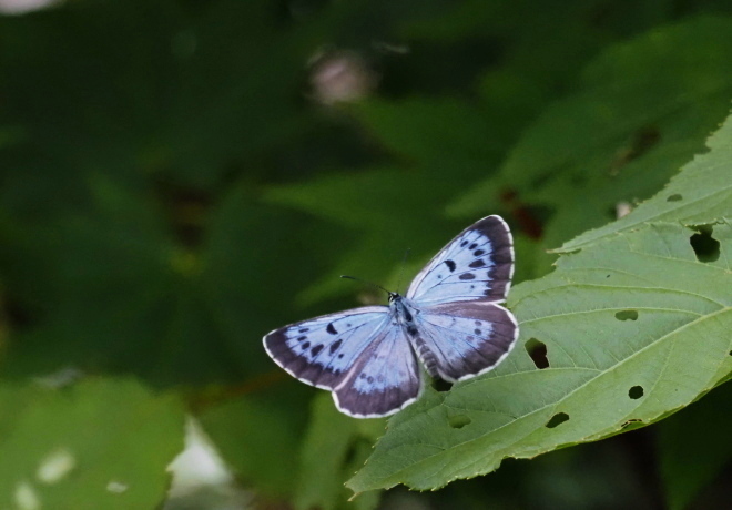 ゴマシジミは草原に見られるが、こちらは山奥の渓谷や沢沿いで見られるという印象。