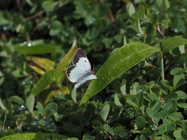 陽が陰り、葉裏に静止した♀。