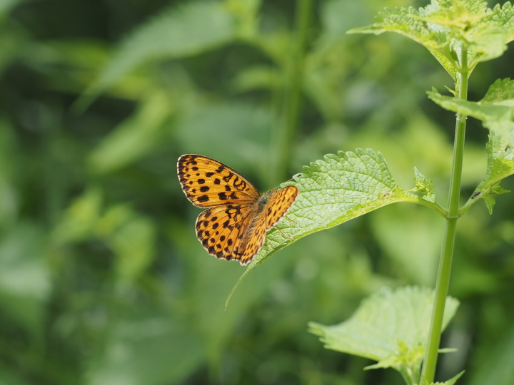 ヒョウモンチョウは乾いた草原、本種は渓谷や湿地で見ることが多い。